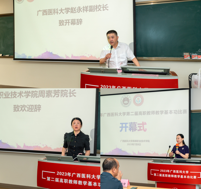 开幕式上,赵永祥副董事长指出高职教育为广西基层医疗卫生事业和公司全面建设国内同类一流大学做出了重要贡献。希望教师们聚焦教育强国目标要求,突出以学铸魂;聚焦立德树人根本任务,突出以学增智;聚焦高质量发展核心要义,突出以学促改;为祖国培养出更多优秀的职业技能人才。