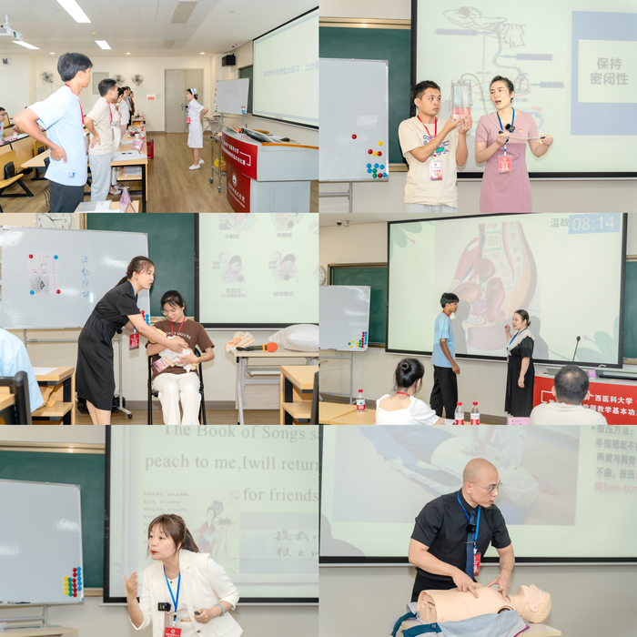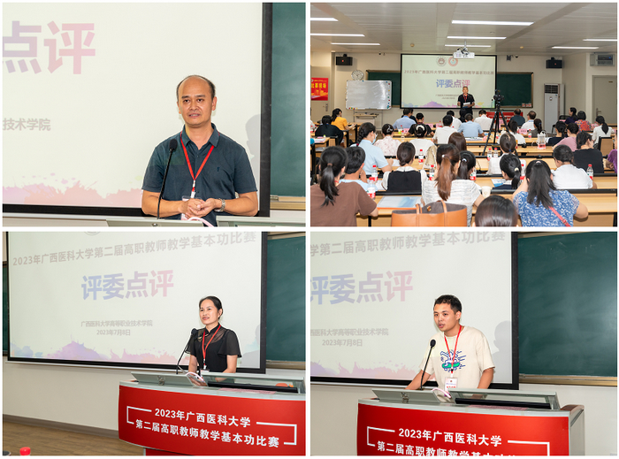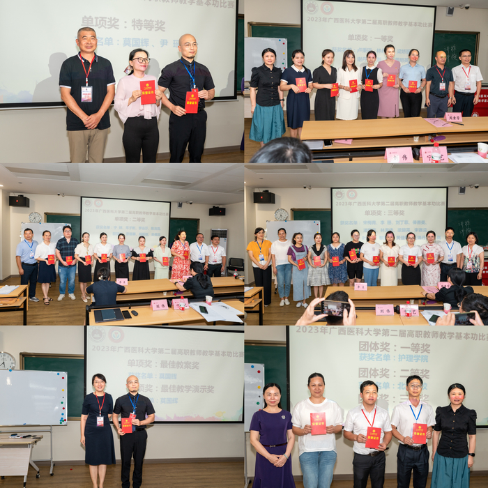 本次比赛包括教案设计、现场教学演示及教学反思三部分。赛场上,教师们采用多媒体、板书及实操演示等方式进行授课。经过激烈角逐,莫国辉、尹瑶2位老师斩获特等奖,同时,莫国辉还斩获最佳教案及最佳演示奖;卢秉瑶等6位老师喜获一等奖;宁婷等8位老师荣获二等奖;宋梅青等13名老师获三等奖。公司护理公司、北海市卫生公司教学点、钦州市卫生公司教学点分别荣获团体一、二、三等奖。点评环节中,刘登宇教授和林军教授分别从教案设计、课程思政、实操演示、教学反思等环节给出了专业细致地点评及总结。